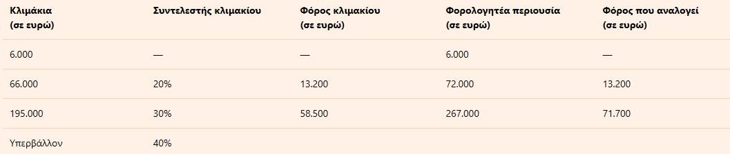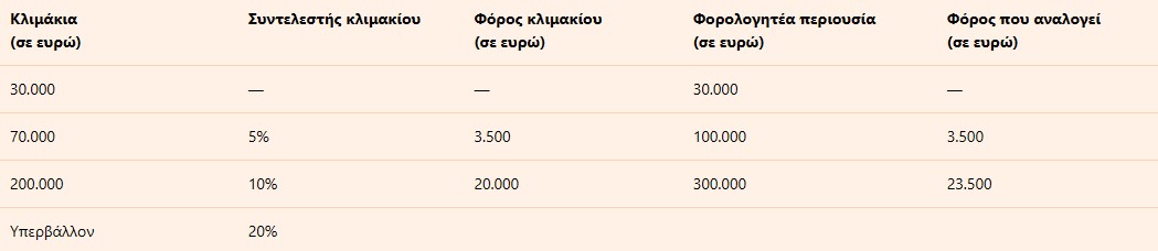 Η απόκτηση ακινήτων ή εμπράγματων ή ενοχικών δικαιωμάτων επί ακινήτων, μετοχών καθώς και λοιπών περιουσιακών στοιχείων (δηλ. όλων των περιουσιακών στοιχείων πλην μετρητών) λόγω θανάτου υπόκειται σε φόρο, ο οποίος υπολογίζεται με βάση τις πιο κάτω φορολογικές κλίμακες:
