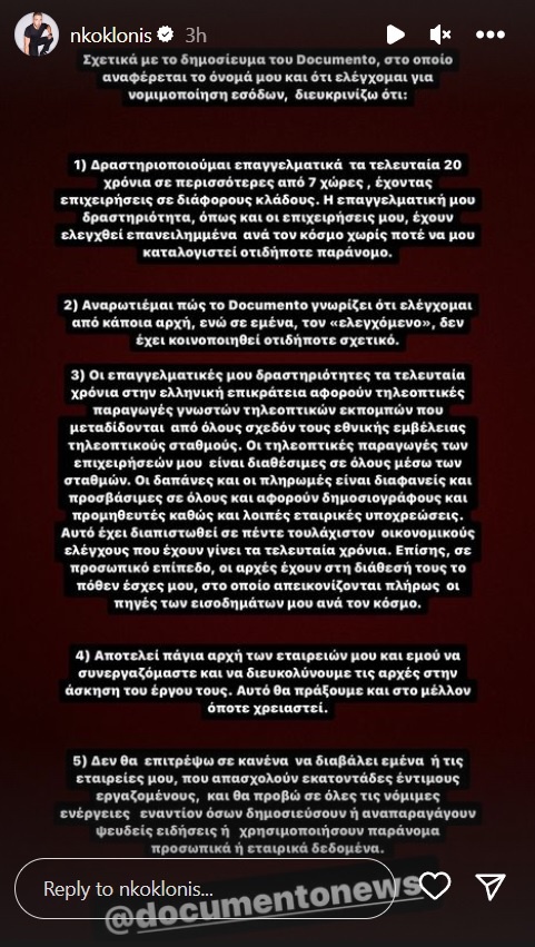 Η απάντηση του Documento στον Νίκο Κοκλώνη