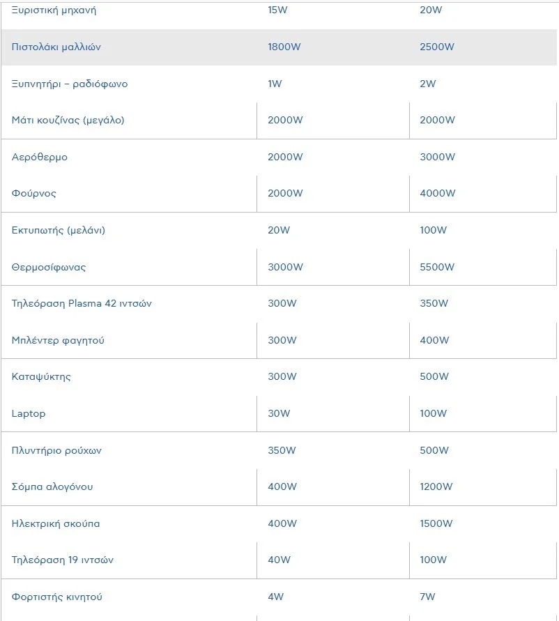 Όπως φαίνεται, τον χειμώνα μου έρχεται, η ερώτηση «πόσο ρεύμα καίει;» θα απασχολήσει πολλούς από εμάς. Ρίξτε μια ματιά στους παρακάτω πίνακες για να έχετε μια ιδέα: