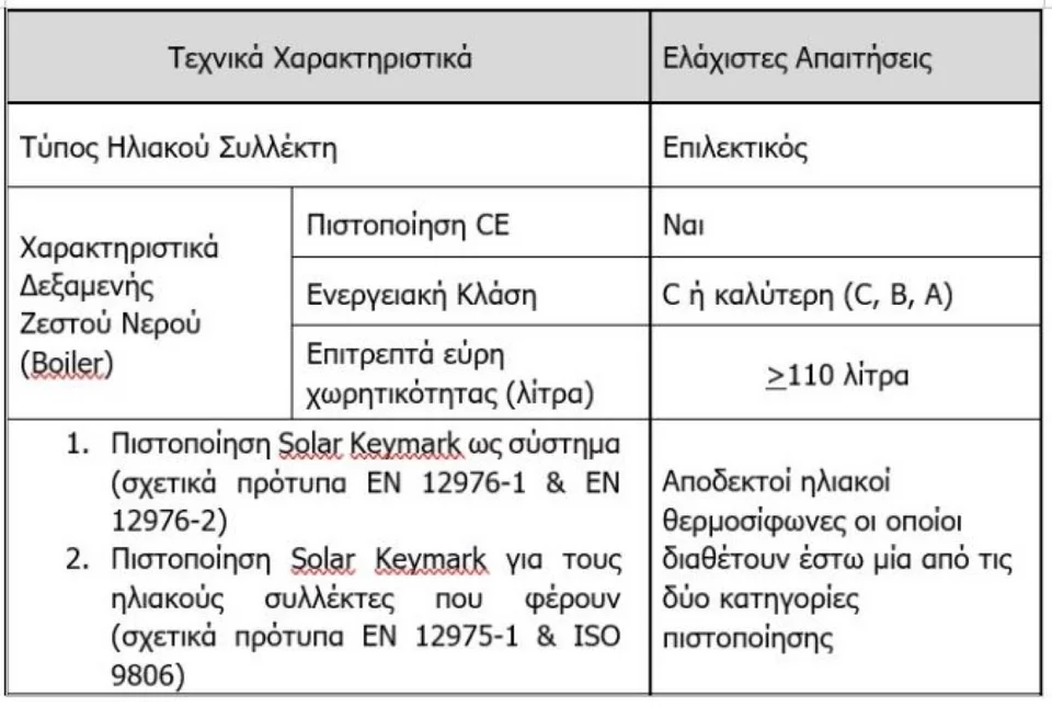 Επιλέξιμοι ηλιακοί θερμοσίφωνες προς αγορά