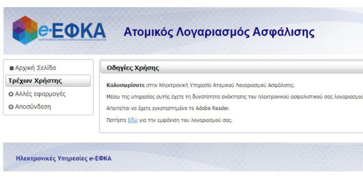Αυτό δεν σημαίνει ότι θα εκτυπωθεί άμεσα το ιστορικό αλλά θα ανοίξει ένα νέο παράθυρο με ένα έγγραφο σε μορφή pdf που θα περιλαμβάνει όλες τις καταχωρημένες ημέρες ασφάλισης.