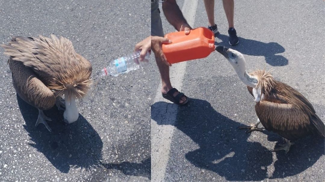 Το πτηνό «μαγνητίστηκε» από την καυτή άσφαλτο, ενώ φαινόταν εξουθενωμένο από την έλλειψη νερού και την υψηλή θερμοκρασία.