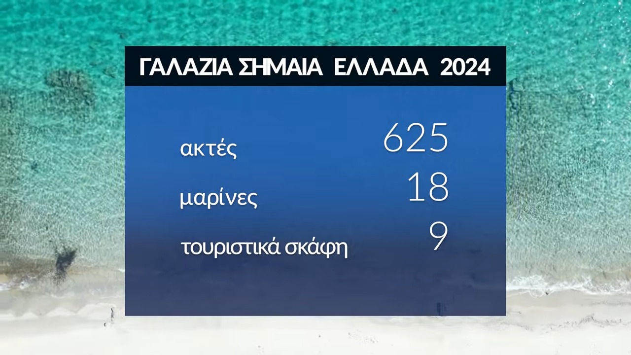 Εξακόσιες είκοσι πέντε (625) Ελληνικές ακτές, δεκαοκτώ (18) μαρίνες και εννιά (9) τουριστικά σκάφη κέρδισαν φέτος το διεθνές βραβείο ποιότητας «ΓΑΛΑΖΙΑ ΣΗΜΑΙΑ».
