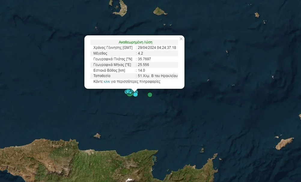 Ο πρόεδρος του ΟΑΣΠ, Ευθύμης Λέκκας μίλησε χθες στο enikos για τις σεισμικές δονήσεις που σημειώθηκαν στην Κρήτη. «Από χθες το βράδυ έως σήμερα έχουν γίνει 8 σεισμικές δονήσεις της τάξεως των 3 έως 4,5 Ρίχτερ ως προς το μέγεθός τους. Αυτές οι σεισμικές δονήσεις απείχαν μεσοσταθμικά 35 χιλιόμετρα από τα βόρεια του Ηρακλείου».