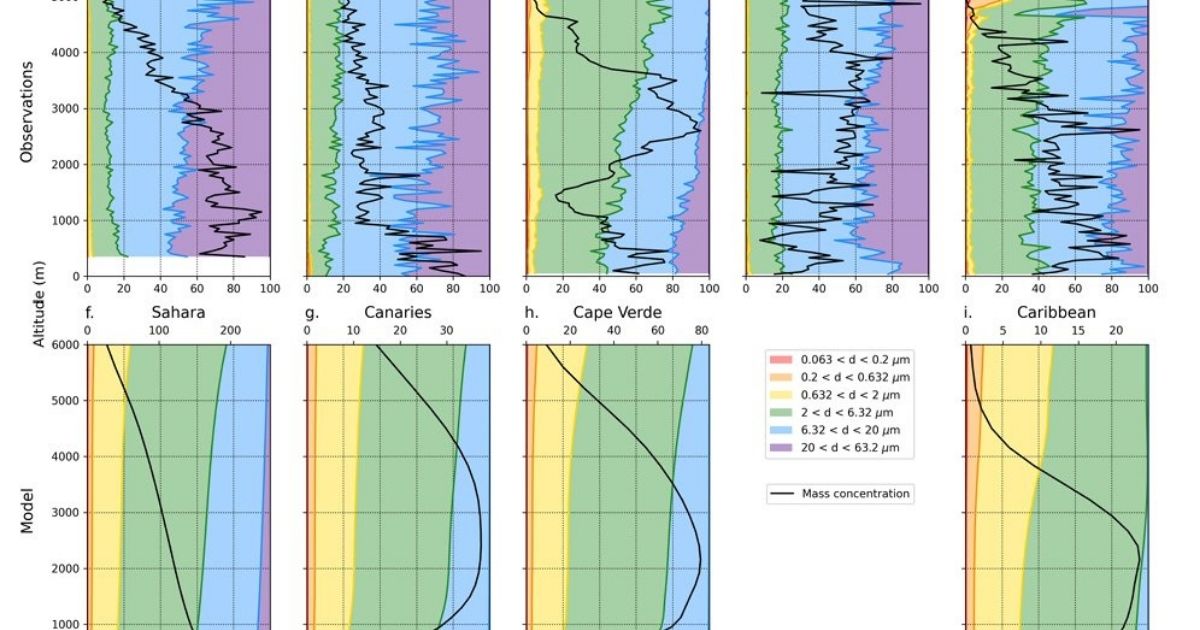 – Είναι σημαντικό ότι τα χονδροειδή σωματίδια στο μοντέλο εναποτίθενται πολύ γρήγορα, με αποτέλεσμα την υποεκτίμηση της μάζας της σκόνης που επιδεινώνεται με τη μεταφορά προς τα δυτικά. Η συνεισφορά μάζας σκόνης 20–63 μm μεταξύ υψομέτρου 2–3,7 km υποτιμάται από παράγοντες έως και 11 φορές στη Σαχάρα, 150 στα Κανάρια Νησιά και 340 στο Πράσινο Ακρωτήριο.