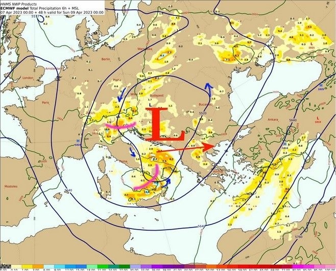 Το αίτιο που θα προκαλέσει αυτή τη μεταβολή του καιρού οφείλεται σε ένα ανώτερο χαμηλό στη μέση τροπόσφαιρα σε ύψος 5.500 στη στάθμη των 500hPa. Το σύστημα αυτό θα απομακρυνθεί μετά την Μεγάλη Τετάρτη και ο καιρός θα βελτιωθεί σε μεγάλο μέρος της χώρας από την Μεγάλη Πέμπτη. Η περαιτέρω πρόγνωση για τις υπόλοιπες μέρες της Μεγάλης Εβδομάδος είναι επισφαλής και γι’ αυτό θα επανέλθουμε τις επόμενες ημέρες για την αναλυτική πρόγνωση μέχρι και την ημέρα του Πάσχα.