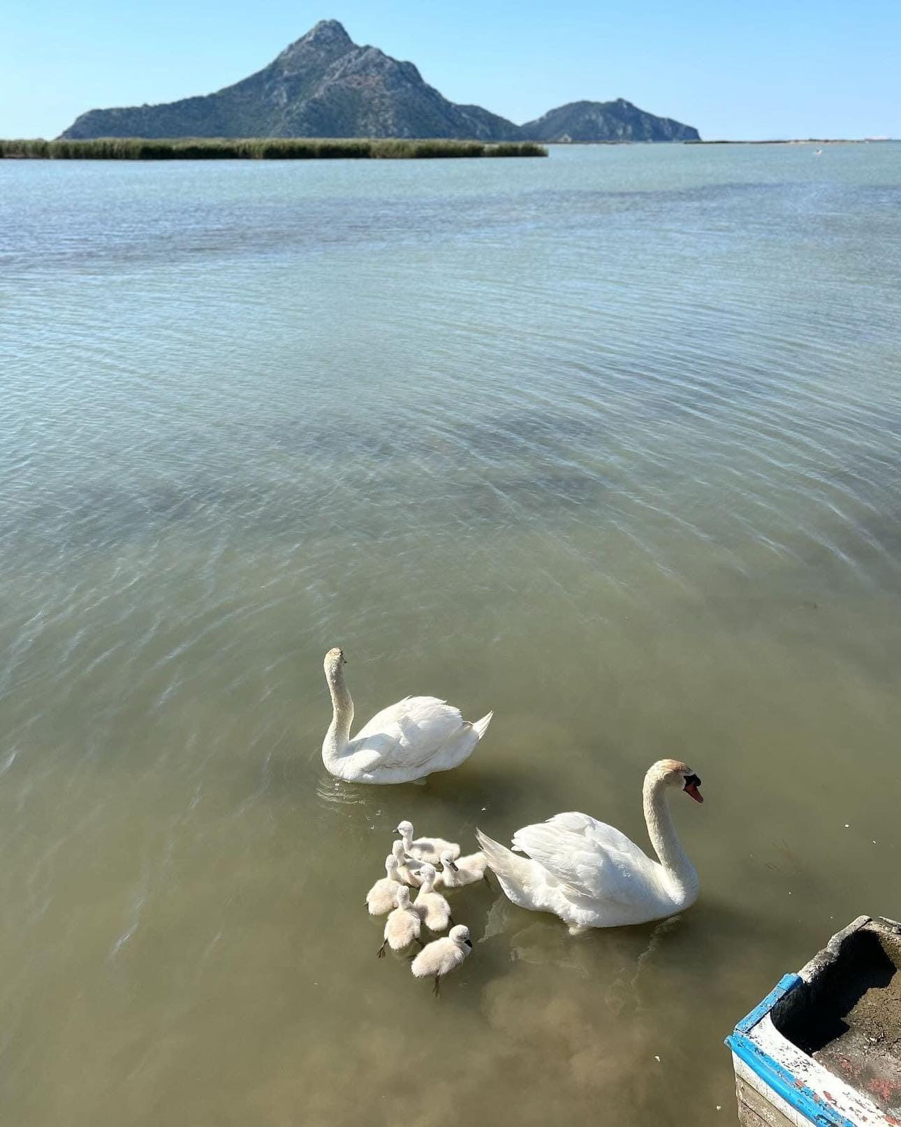 «Το μοναδικό ζευγάρι Βουβόκυκνων, που κατοικεί μόνιμα για πάνω από 10 χρόνια στις εκβολές του ποταμού Αχελώου, είχε και φέτος μια μεγάλη επιτυχία στην αναπαραγωγή με 7 κυκνάκια».