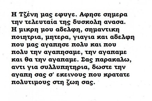 Σας παρακαλώ, αντί για συλλυπητήρια, δώστε την αγάπη σας σ’ εκείνους που κρατάτε πολύτιμους στη ζωή σας».