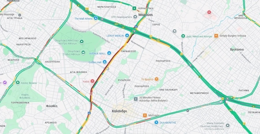 Την ίδια ώρα καθυστερήσεις σημειώνονται από το Δαχτυλίδι στο Μαρούσι μέχρι το Χαλάνδρι.