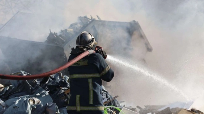 Σύμφωνα με την Πυροσβεστική η φωτιά καίει χαμηλή βλάστηση ανατολικά του οικισμού των Ρομά.