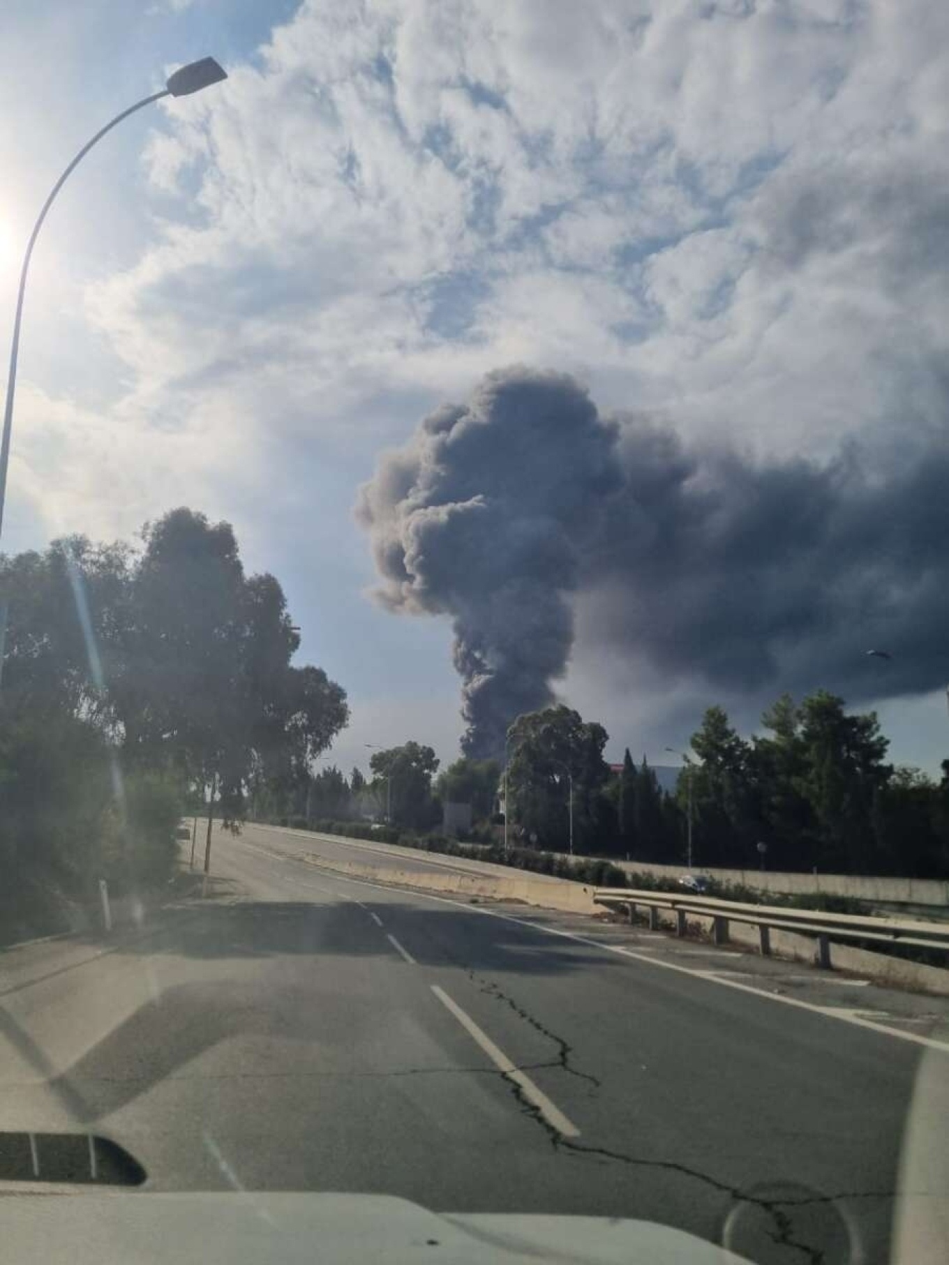 Ένα σύννεφο μαύρου καπνού καλύπτει από νωρίς το πρωί σήμερα την πόλη της Λάρνακας στη Κύπρο.