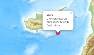 Ισχυρός σεισμός 4,3 Ρίχτερ σημειώθηκε ανοιχτά της Κύπρου.