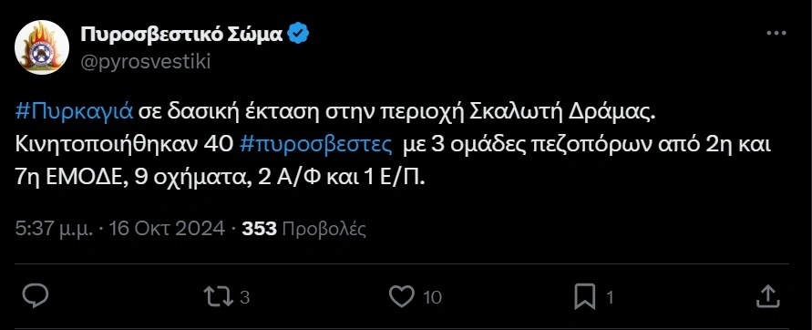 Φωτιά: Η ανακοίνωση της πυροσβεστικής