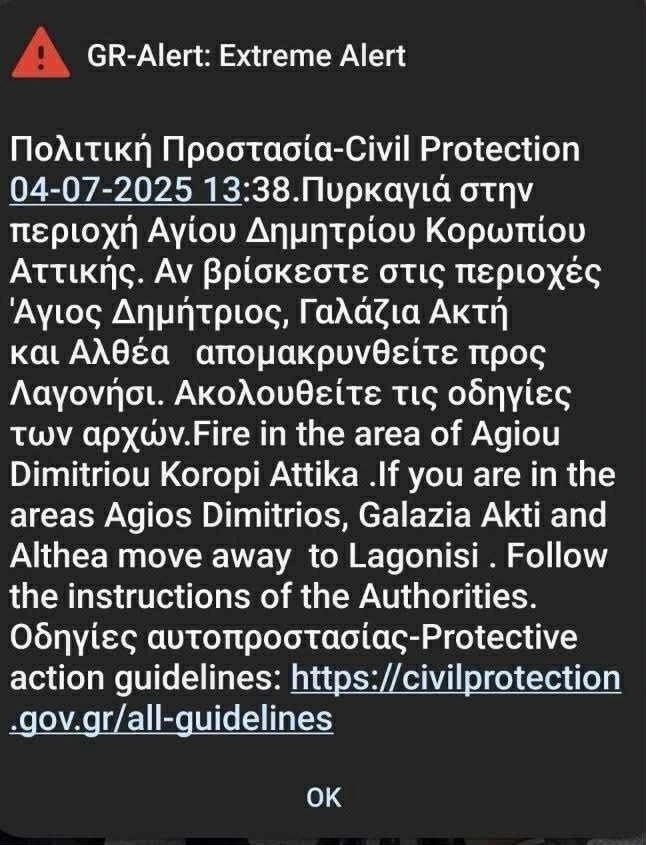 Κορωπί: Μήνυμα του 112 στην περιοχή