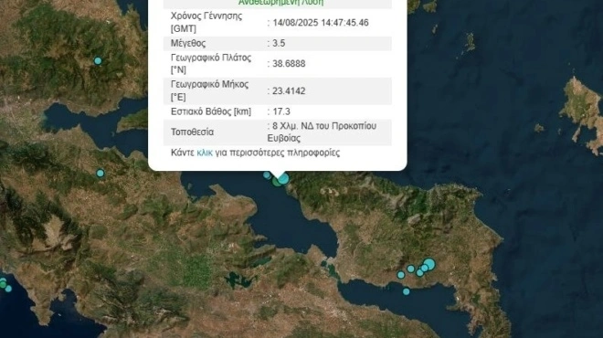 Σεισμός 3,5 βαθμών της κλίμακας Ρίχτερ σημειώθηκε πριν από λίγα λεπτά στην Εύβοια.