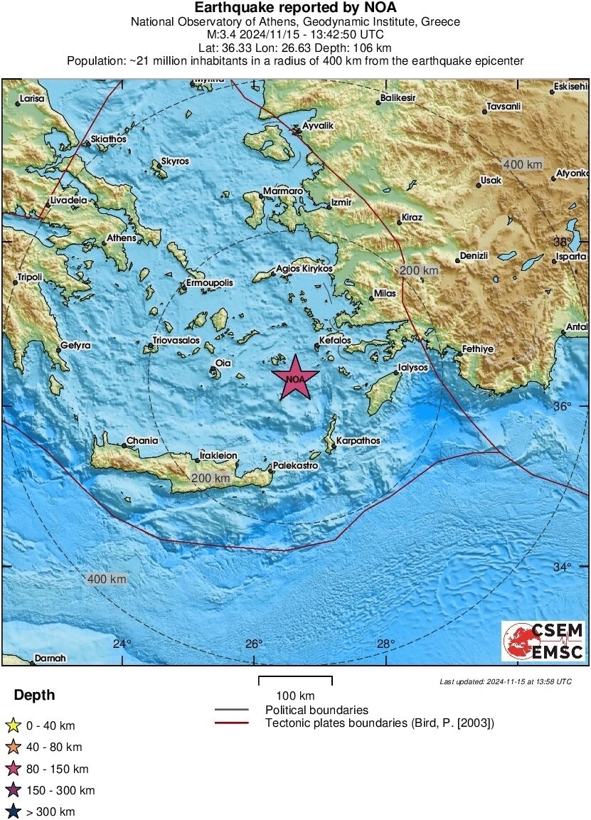 Σεισμός μεγέθους 3,4 Ρίχτερ σημειώθηκε στα Δωδεκάνησα, και συγκεκριμένα 35 χιλιόμετρα νότια-νοτιοανατολικά της Αστυπάλαιας.