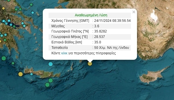 Σεισμός: Ισχυρή σεισμική δόνηση 3,6 της κλίμακας Ρίχτερ σημειώθηκε πριν από λίγο στη Ρόδο.