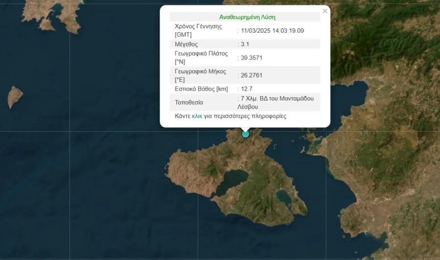 Το επίκεντρο της σεισμικής δόνησης εντοπίστηκε 7χλμ βορειοδυτικά του Μανταμάδου, ενώ το εστιακό βάθος υπολογίζεται στα 13χλμ.