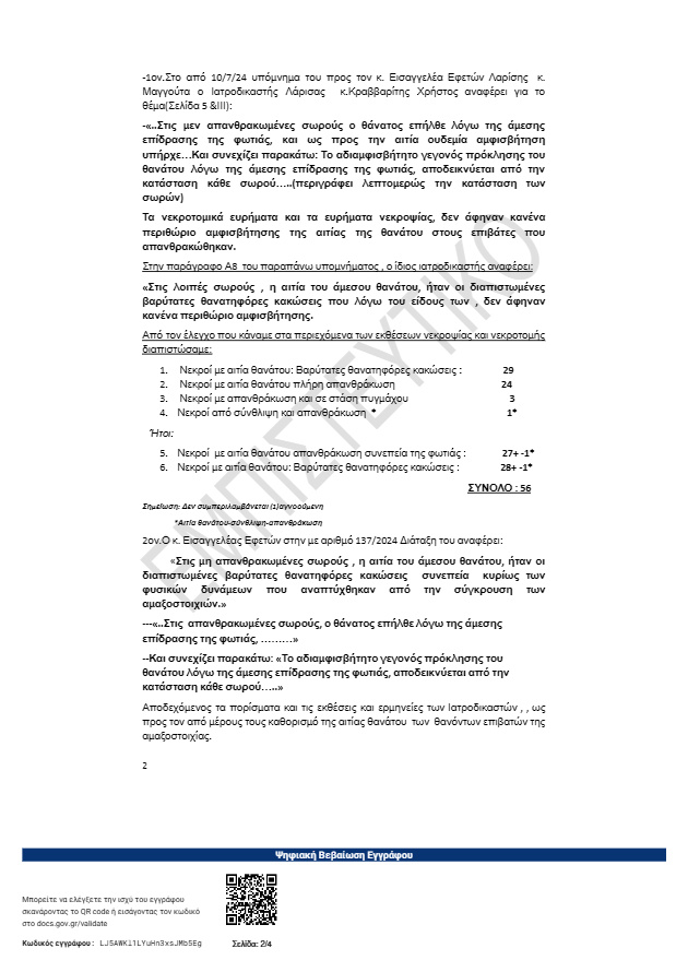 2. Νεκροί με αιτία θανάτου πλήρη απανθράκωση 24