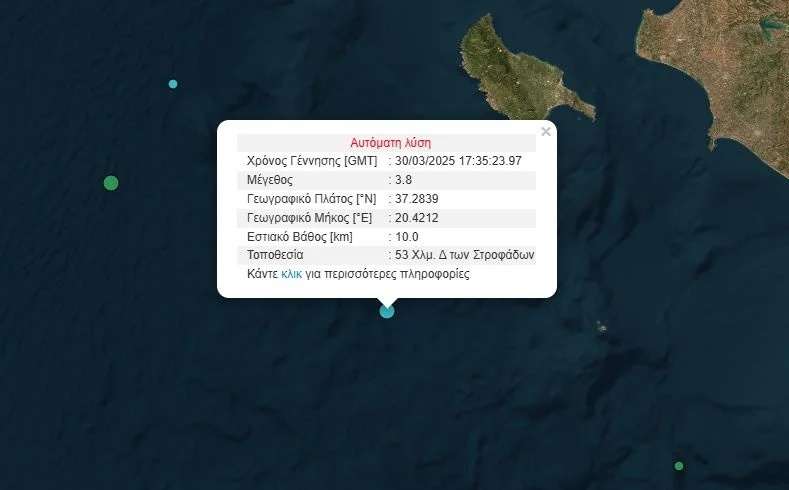 Σεισμός 3,8 Ρίχτερ ταρακούνησε πριν από λίγο στο Ιόνιο συγκεκριμένα ανοιχτά των Στροφάδων.