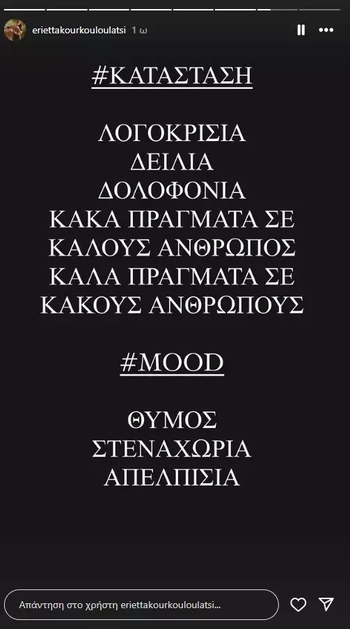 Τα Insta Stories της Εριέττας Κούρκουλου