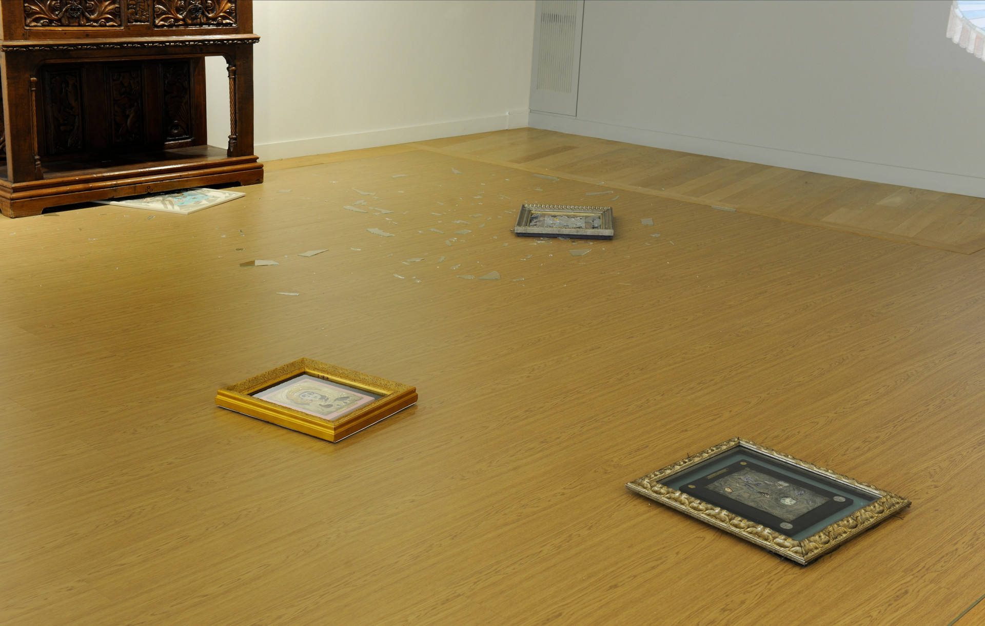 Σε ανακοίνωσή της, η Πινακοθήκη έδωσε φωτογραφίες από τους βανδαλισμούς, καταδικάζοντας τις ενέργειες του βουλευτή κι ενός συνεργάτη του, οι οποίοι έβγαλαν από τους τοίχους τα έργα και πετώντας τα στο πάτωμα και σπάζοντάς τα.