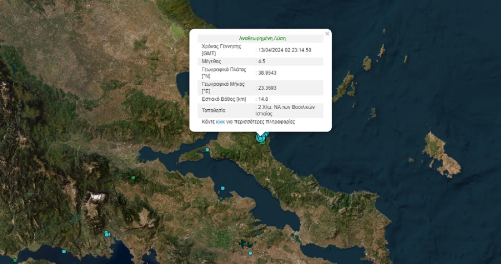 Η μεγαλύτερη δόνηση ήταν αυτή των 4,5 Ρίχτερ που καταγράφηκε στις 05:23, με επίκεντρο δύο χιλιόμετρα νοτιοανατολικά των Βασιλικών Ιστιαίας.