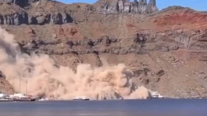 Το Σάββατο το απόγευμα σημειώθηκε κατολίσθηση στη Θηρασιά Σαντορίνης, δίπλα από το λιμάνι Κόρφου. Ευτυχώς δεν υπήρξαν τραυματισμοί ή ζημιές, μόνο ένα τεράστιο σύννεφο σκόνης το οποίο προκλήθηκε από την κατολίσθηση