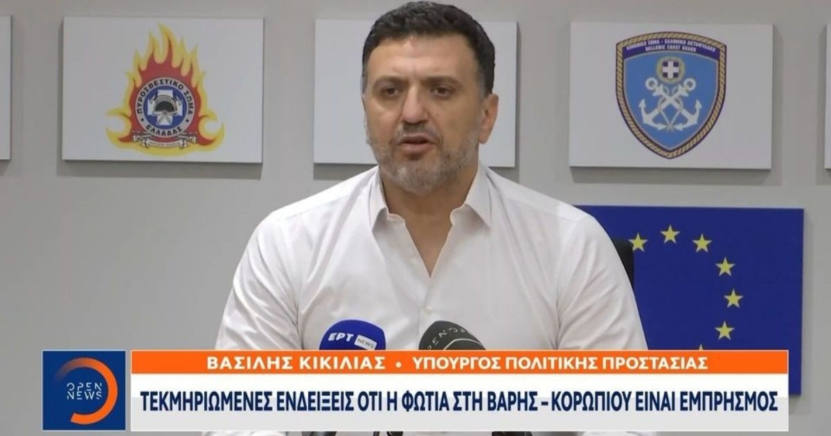 Η τοποθέτηση του Υπουργού Πολιτικής Προστασίας, Βασίλη Κικίλια, σχετικά με τη μεγάλη φωτιά που ξέσπασε στη Βάρης-Κορωπίου.