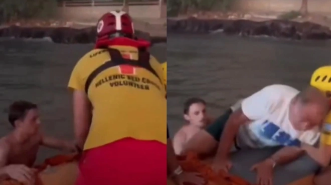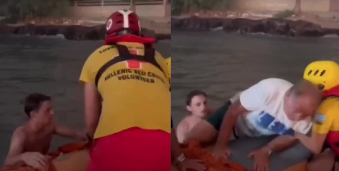 Συγκλονίζει η διάσωση πολιτών από εθελοντές του Ελληνικού Ερυθρού Σταυρού στα Βραχναίικα Αχαΐας, όπου μαίνεται από την Τρίτη η μεγάλη φωτιά.