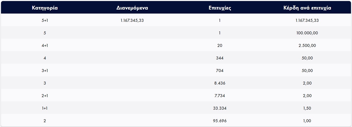 Ένας τυχερός κέρδισε 1.167.345,33€