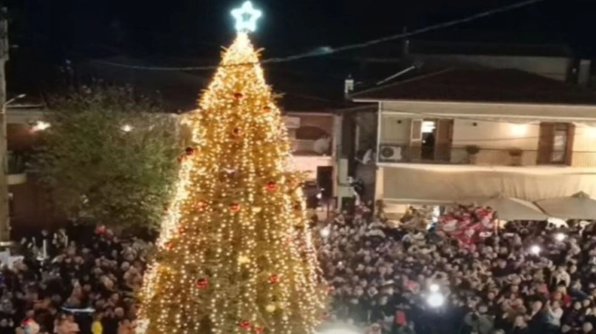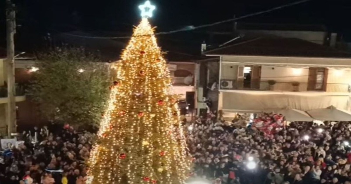 Στο δεύτερο πόδι της Χαλκιδικής, στο χωριό Ταξιάρχης, φωταγωγήθηκε ένα εντυπωσιακό έλατο με 20.000 λαμπάκια, φτάνοντας σε ύψος 13 μέτρων.