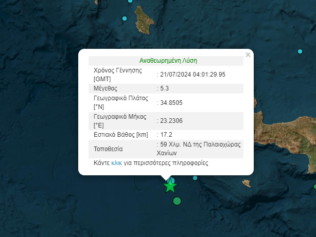 Σεισμός τώρα 5,3 Ρίχτερ νοτιοδυτικά της Παλαιοχώρας Χανίων