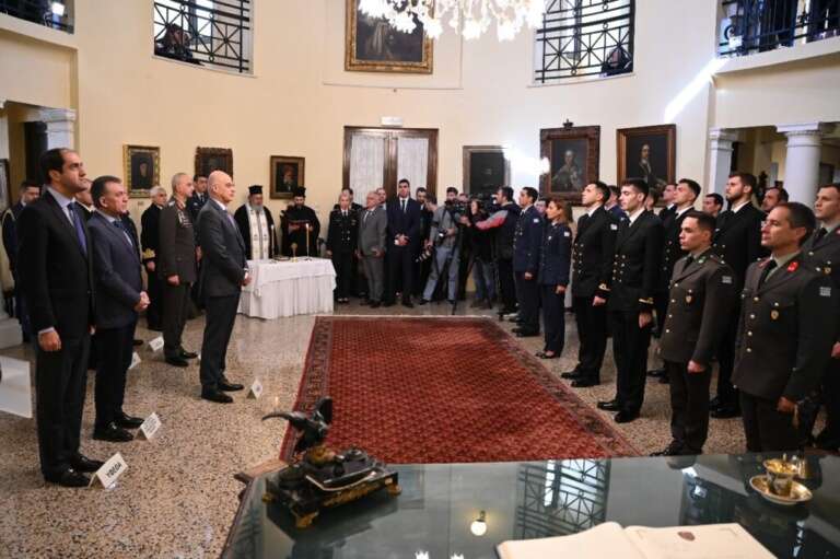 Στην ορκωμοσία των έφεδρων εν ενεργεία αξιωματικών ολυμπιονικών, στη Λέσχη Αξιωματικών Ενόπλων Δυνάμεων (ΛΑΕΔ), βρέθηκε ο υπουργός Εθνικής Άμυνας Νίκος Δένδιας.