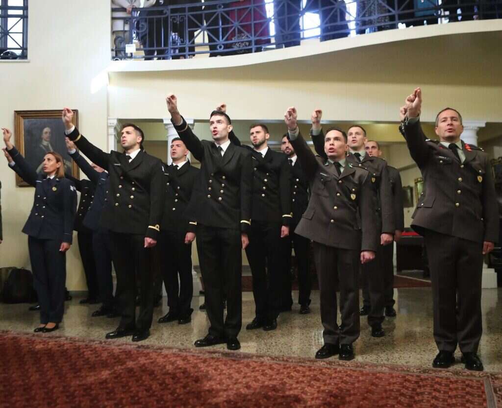 Τιμάμε σήμερα τους Ολυμπιονίκες μας που ορκίσθηκαν Αξιωματικοί των Ενόπλων Δυνάμεων, ως πηγή έμπνευσης, με τις επιδόσεις τους και το ταλέντο τους. Οι διακρίσεις τις οποίες έχουν πετύχει αντικατοπτρίζουν αφοσίωση και διαρκή προσπάθεια και αποτελούν πρότυπο για το κοινωνικό σύνολο