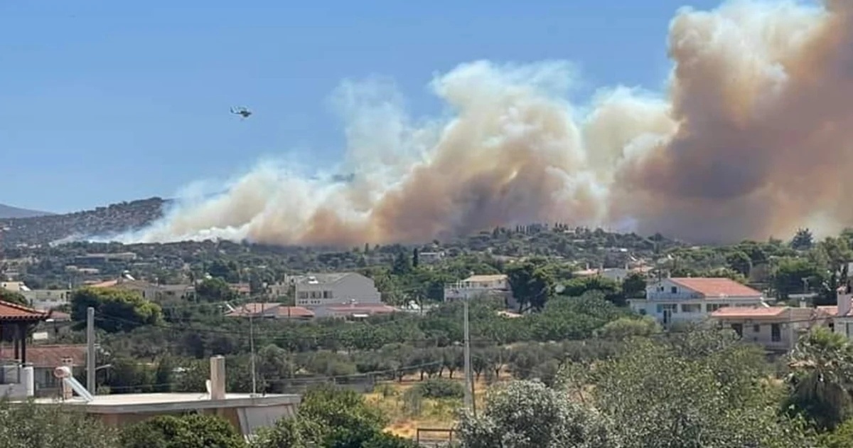 Η φωτιά που ξέσπασε στην Αγία Μαρίνα στο Κορωπί είναι μεγάλη και ήδη έχουν σταλθεί μηνύματα του 112 στους κατοίκους για να εκκενώσουν.