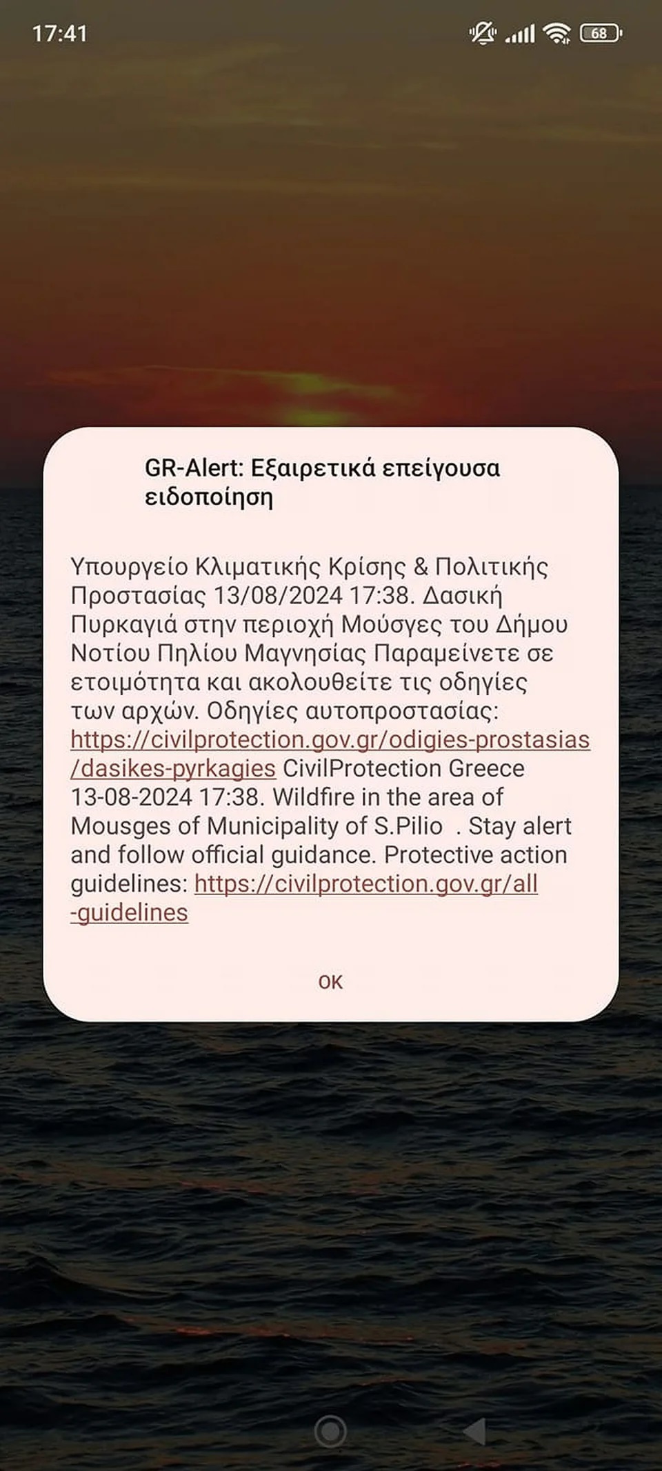 Μάλιστα, λίγο μετά τις 17:30 εστάλη μήνυμα του 112, προκειμένου οι πολίτες που βρίσκονται στην περιοχή να είναι σε ετοιμότητα.