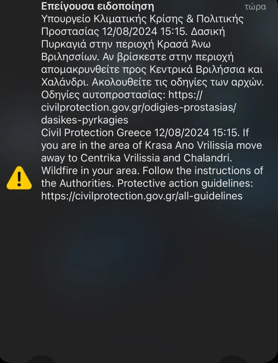 Νέα εντολή εκκένωσης εστάλη από το 112 σε περιοχή των Βριλησσίων. Η φωτιά έχει κατέβει από την Πεντέλη και απειλεί και τον οικιστικό ιστό της Αττικής.