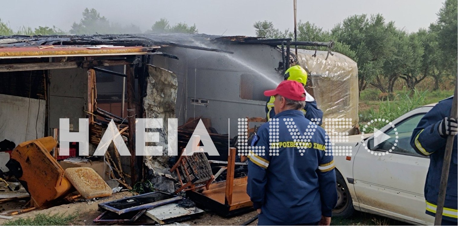 Φωτιά ξέσπασε σε λυόμενη κατοικία στην Μυρτιά Πύργου λίγα λεπτά πριν ξεκινήσει η νεκρική πομπή για την κηδεία της 11χρονης.