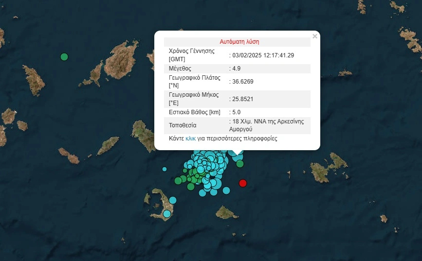 Αναστατωμένοι οι κάτοικοι των νησιών, νέος δυνατός σεισμός μεγέθους 4,9 Ρίχτερ σημειώθηκε το μεσημέρι της Δευτέρας 3 Φεβρουαρίου ανάμεσα σε Αμοργό και Σαντορίνη.