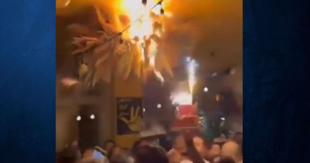 Η φωτιά ξέσπασε όταν σερβιτόρος του καταστήματος μετέφερε τούρτα σε πελάτη που είχε γενέθλια ωστόσο την σήκωσε ψηλά με αποτέλεσμα να τυλιχτεί στις φλόγες ο χριστουγεννιάτικος στολισμός.