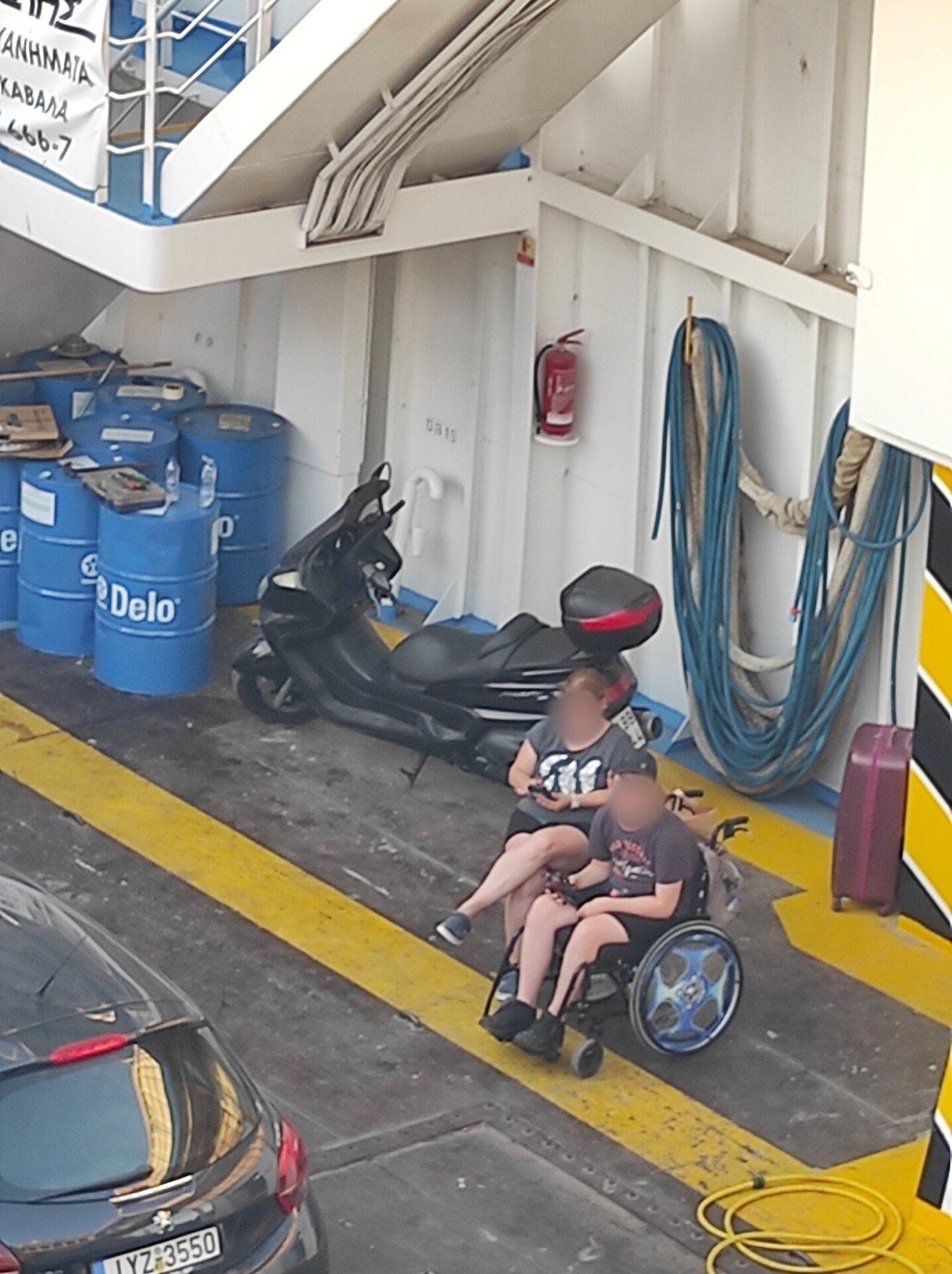 Αντιδράσεις προκαλούν οι εικόνες με παιδί ΑμεΑ να ταξιδεύει- εν μέσω καύσωνα- σε γκαράζ ferry boat από τη Θάσο για την Κεραμωτή Καβάλας.