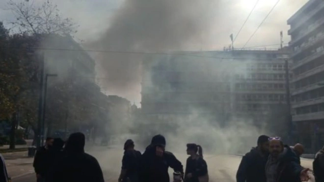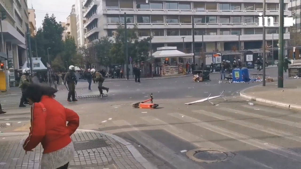 Δακρυγόνα και κρότου λάμψης στην κάτω πλευρά της πλατείας Συντάγματος την ώρα της συγκέντρωσης για τα Τέμπη.