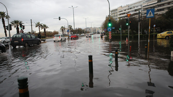 Η Λεωφόρο Ποσειδώνος ανήμερα των Χριστουγέννων πλημμύρισε εξαιτίας της βροχόπτωσης αλλά και βοθρολυμάτων που βγήκαν στην παραλιακή.