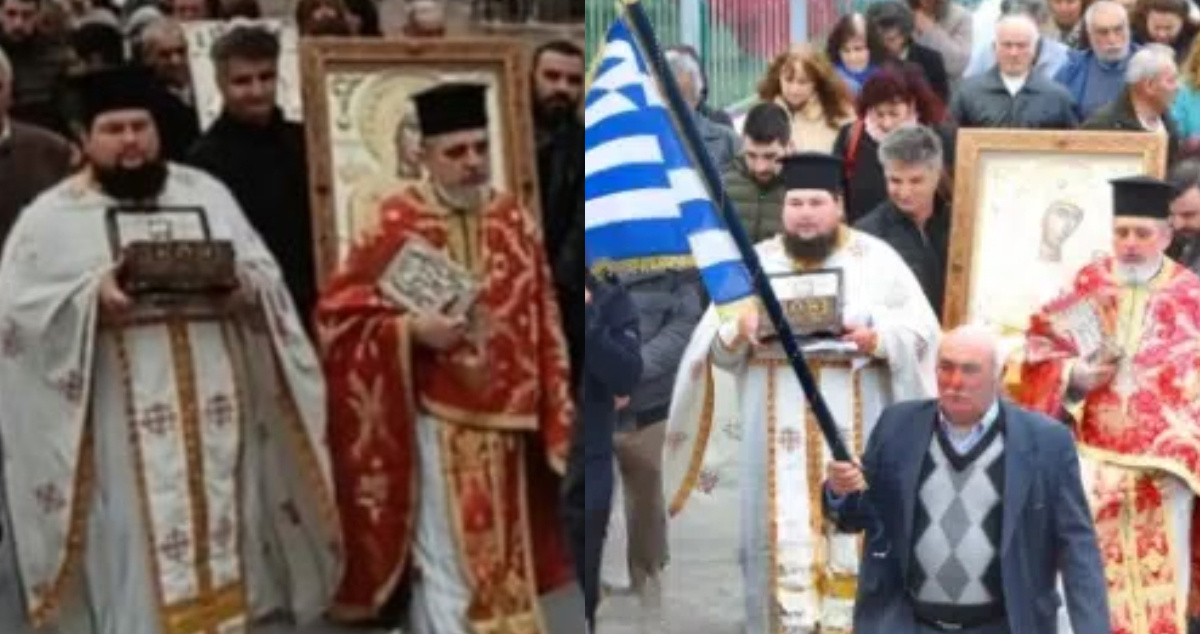 Με λάβαρα, ελληνικές σημαίες, τα λείψανα του Αγίου Χαραλάμπους, την εικόνα της Παναγίας της Προυσιώτισσας και την κάρα του Αγίου Προσδόκιου, οι πιστοί περιέφεραν τα ιερά κειμήλια στους δρόμους του χωριού, ζητώντας τη θεϊκή προστασία και τη γαλήνη του τόπου τους.