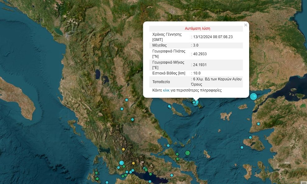 Σύμφωνα με τις πρώτες εκτιμήσεις το επίκεντρό του σεισμού εντοπίζεται 8 Χλμ. ΔΒΔ των Καρυών Αγίου Όρους