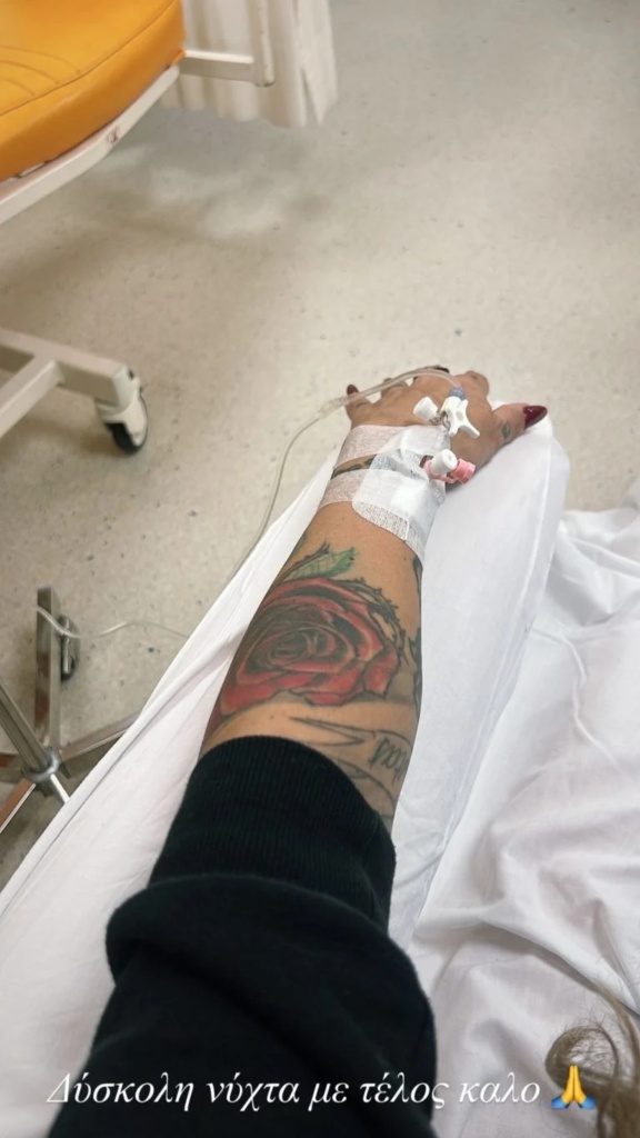 Το χέρι της όσο είναι καθισμένη σε νοσοκομειακή καρέκλα και της έχει χορηγηθεί ορός φωτογράφισε η τραγουδίστρια, χωρίς όμως να αποκαλύπτει τι συνέβη με την υγεία της.