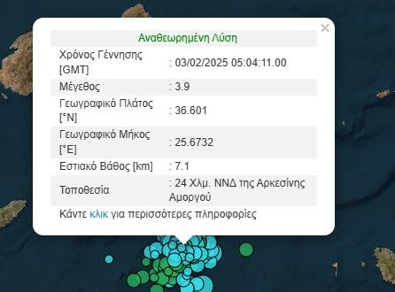 Συγκεκριμένα οι σεισμοί που σημειώθηκαν ήταν: 3.9, 4.2, 4.2, 2.0, 3.7, 3.6, 3.7 και 4.1.