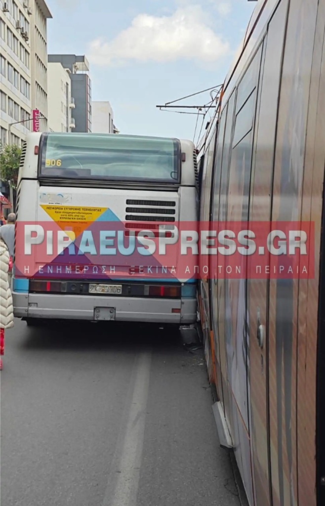 Τροχαίο σημειώθηκε στον Πειραιά, όταν συρμός του Τραμ συγκρούστηκε με ένα λεωφορείο.