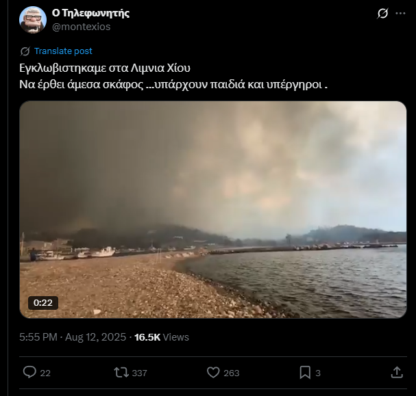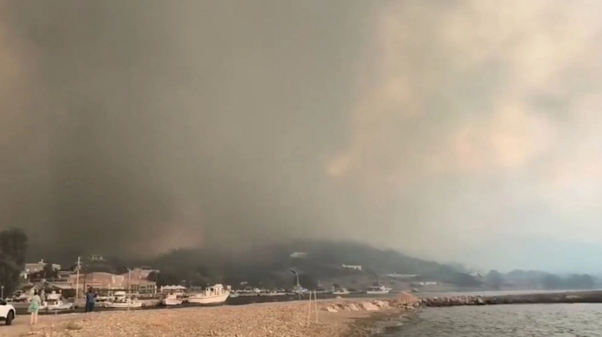 Εγκλωβισμένοι σε παραλίες βρίσκονται πολίτες εξαιτίας της πυρκαγιάς που ξέσπασε στη Χίο.